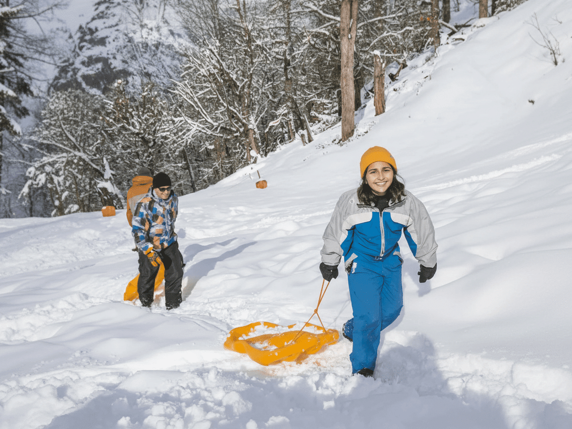 Deslizate en trineo en plena montaña, disfrutando de una experiencia simple, segura y llena de diversión en la nieve patagónica.